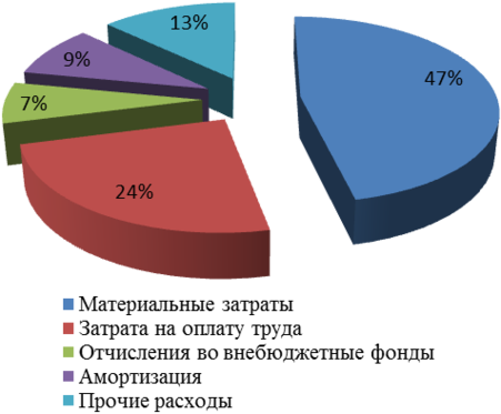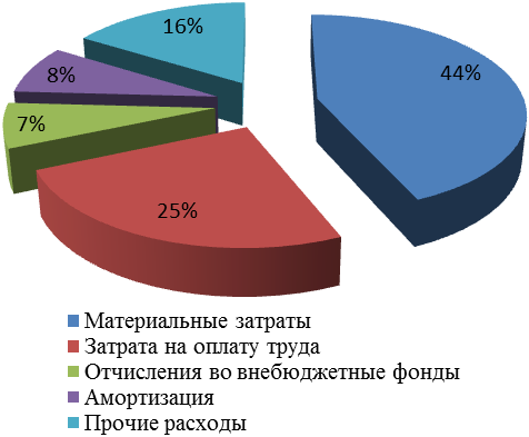 Рисунок 2.3 – Структура себестоимости по элементам 2015г