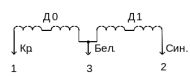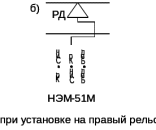 Кабельные выводы РД и НЭМ не имеют цветовую маркировку. Кабель датчика, который установлен на левый рельс по отношению к нечетному направлению движения, не подключается к одноименным проводам трехжильного вывода напольного электронного модуля (рисунок 1.3а). Кабель датчика, который установлен на правый рельс по отношению к нечетному направлению движения, подключается к проводам трехжильного вывода в следующем порядке: красный-синий, синий-красный, белый-белый (рисунок 1.3б). Порядок подключения кабеля РД и НЭМ не определяет направление счета осей счетным пунктом.