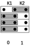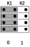 На кроссовой плате КБР двумя наборами перемычек (К1, К2) для каждой ПЛР задается код конфигурации контролируемого участка, который определяет алгоритм подсчета числа осей на участке. Код конфигурации задается путем установки соответствующих перемычек в положение «0» или «1», которые указаны на кроссовой плате.