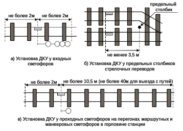 Путевой ящик ПЯ устанавливается как можно ближе к месту установки ДКУ с соблюдением габарита (не более 3 м от места крепления ДКУ), при этом с ДКУ применяется соединительный кабель длиной 5 м.
