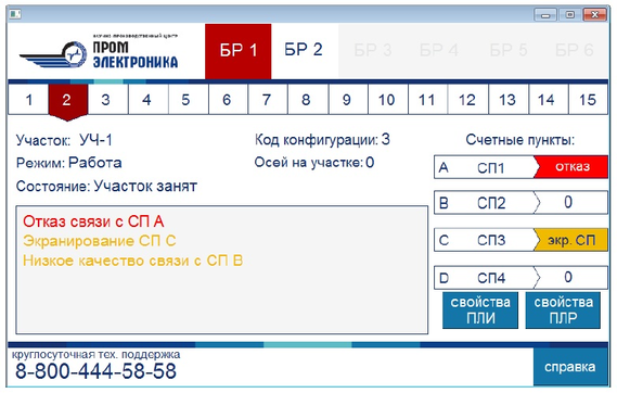 окно диагностических сообщений – в окне диагностических сообщений выводится подробная информация об имеющихся отказах ПЛР или подключенных к ней СП.