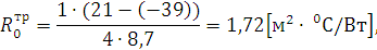 Rreq= 0,00045·7648,6+1,9= 5,342м20С/Вт.