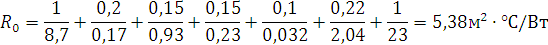 – сумма термических сопротивлений конструктивных слоёв многослойного ограждения;