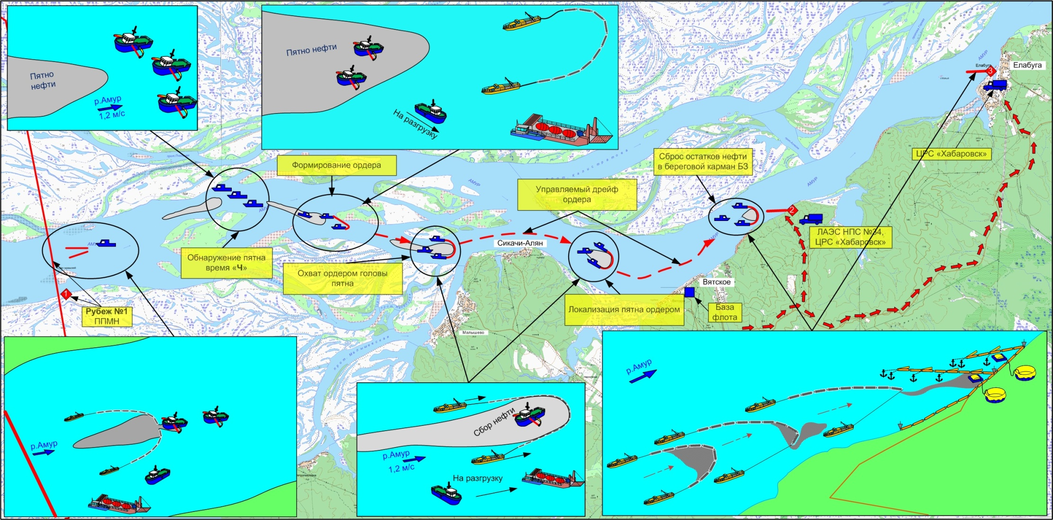 Общая схема аварийного реагирования с расстановкой рубежей.