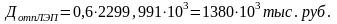 Таким образом, величина доходов от отпуска электроэнергии, проходящей по ЛЭП, составит 1,380 млрд. руб.