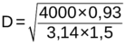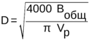 По общему расходу воды Bобщ нужно определить диаметр трубы, пользуясь формулой