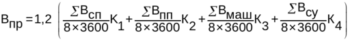 – расход воды на работу силовых установок, л/см.; К1, К2, К3, К4 – коэффициенты неравномерности потребления; 8,2 – число часов в рабочей смене; 3600 – число секунд в часу;