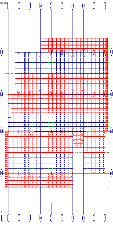 Монолитная плитная перекрытия балочного типа рассчитывается по балочной схеме полосой в погонный метр. План перекрытия представлен на рисунке 3.1. Общий вид схемы в ПК ЛИРА-САПР 2013 представлен на рисунке 3.2.