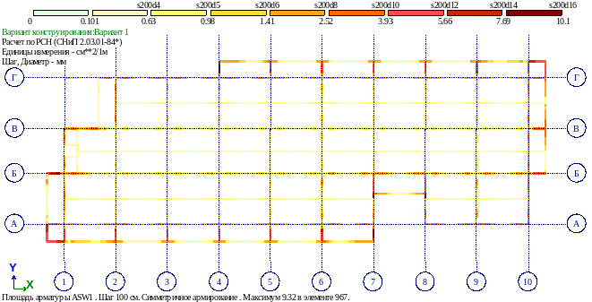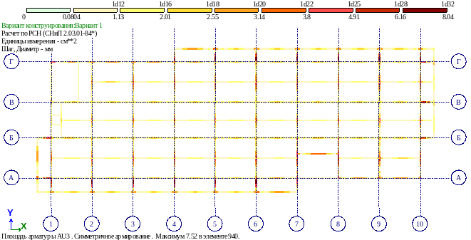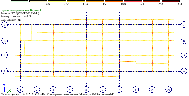 Рисунок Ю.17– Армирование стержней AU1 (угловая), см2