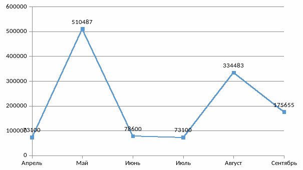 Рисунок 2.2 Затраты на рекламу, динамика апрель-сентябрь 2014 г.