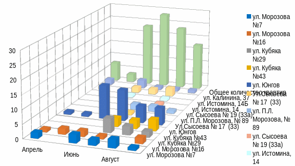 | 3 | ул. Кубяка №29 | 0 | 0 | 0 | 5 | 3 | 2 |