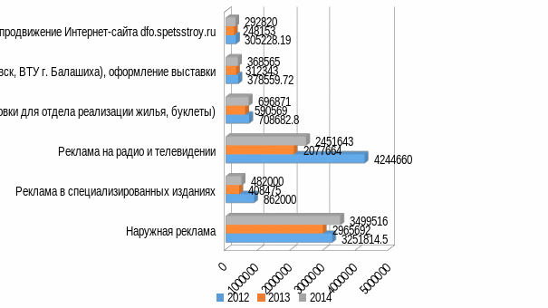 Таблица 2.11 Динамика затрат ФГУП «ГУСС «Дальспецстрой» при Спецстрое России» на основные виды рекламы, 2012 – 2014 гг.