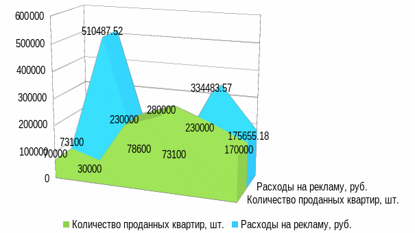 Рисунок 2.4 - Соотношение затрат на рекламу и количества проданных квартир