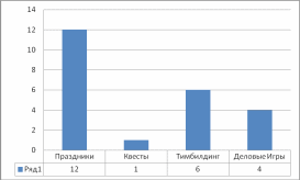 В 2014году (рис. 2.9) не смотря на появление нового отдела, среди основных проектов все так же преобладали праздники.