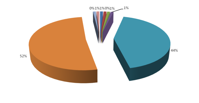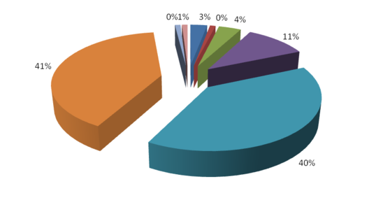 На основании статистических данных (табл. 3.1 - 3.4) построим диаграммы выгрузки (погрузки) по станции Хабаровск II по роду груза за 2012, 2013, 2014 года (рис. 3.1 - 3.6).