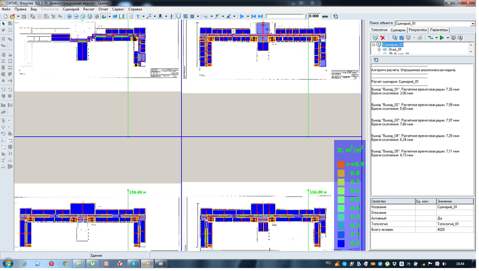 2D модель учебного корпуса 1 ДВГУПС, построенная для определения времени эвакуации и скопления людей