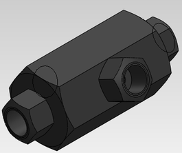 Переходник состоит шестигранника 50×90 мм, с четырех сторон сквозные отверстия диаметром 3 мм. Так же имеются отверстия М13×1,5. Представлен на рисунке 2.10.