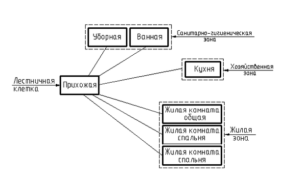 Рисунок 1.1 Функциональная схема трехкомнатной квартиры
