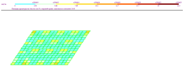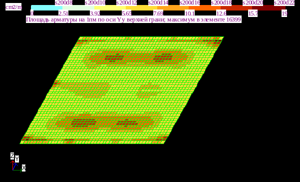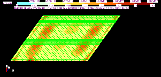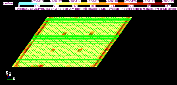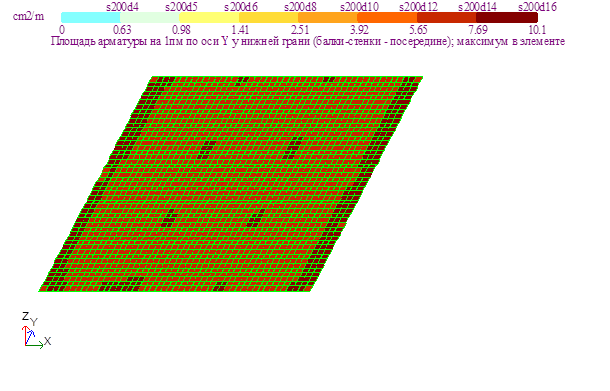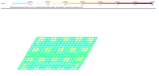 Результаты армирования нижней грани плиты: