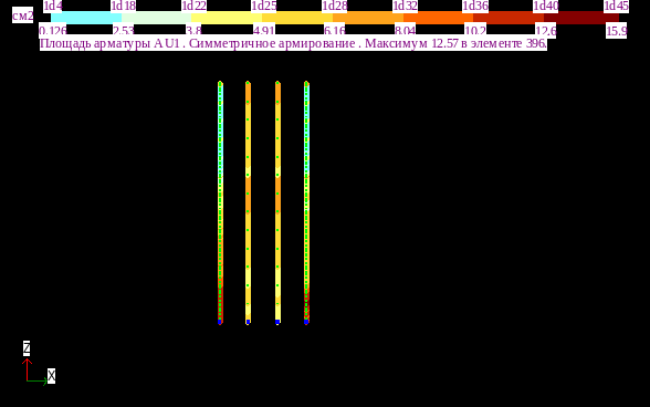 - рабочая арматура по направлению оси Х - диаметр 18 мм А400 шаг 150;