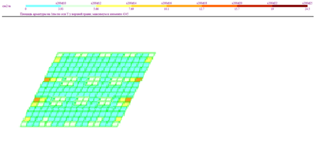 Рисунок 2.32 Армирование плиты фундамента по верхней грани (ось Y)