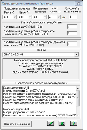- рабочая арматура по направлению оси Y - диаметр 12 мм А400 шаг 150.