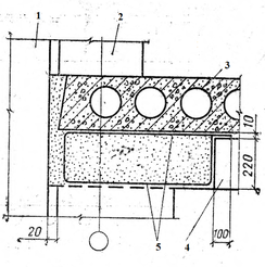 1 – рядовая панель; 2 – колонна; 3 – пристенная плита перекрытия; 4 – полка ригеля; 5 – конструктивная арматура для крепления штукатурной сетки