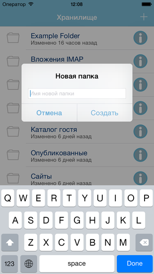 CreateFolderAlertController служит для ввода имени создаваемой папки. Интерфейс приведен на рисунке 3.23.
