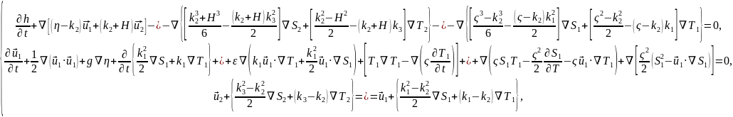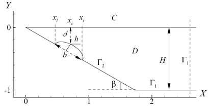 Используется иерархия моделей, учитывающих изменение во времени донной поверхности: линейные и нелинейные модели мелкой воды, слабонелинейные дисперсионные модели, полученные [18] и совпадающие в случае ровного дна с известными моделями Мея-Меоте и Перегрина [19, 20], упрощенные модели Грина-Нагди [21], одно- и двухслойные нелинейно-дисперсионные модели (НЛД) Лью-Линетта [22], а также полная модель течения идеальной жидкости [23]. Для записи уравнений вводятся обозначения: