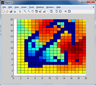 программа строит тепловую карту рентабельности, которая показывает изменение уровня рентабельности фабрики в зависимости от ее размещения на исследуемой территории. На рисунке 2.12 приведена тепловая карта, построенная по результатам расчета.