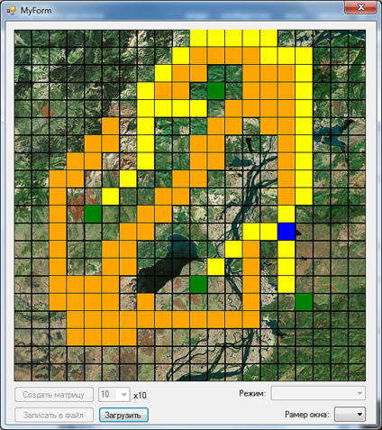 На рисунке 3.4 показана матрица исследуемой территории с указанием месторождений и недоступных участков.