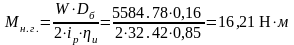 Момент статистического сопротивления при перемещении тележки с номинальным грузом, приведенный к валу двигателя
