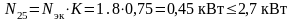 Мощность двигателя по условиям нагрева при ПВ=25%