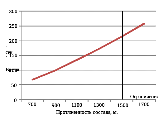 Рисунок 3.5 – Зависимость времени срабатывания тормозов длинносоставного поезда от его протяженности