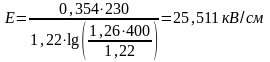 – напряжённость электрического поля около поверхности провода, кВ/см.