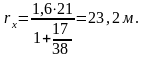 Приведем пример расчета зоны защиты стержневого молниеотвода, с высотой защищаемых объектов hx=17м и высотой конуса зоны защиты, h0=38 м.