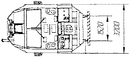 Новый электровоз максимально сближен по форме и свойствам с локомотивами семейства «Ермак», но работа машинистов будет более удобной и комфортной. 4ЭС5К отличается от системы многих единиц тяги электровозов 2х2ЭС5К (рисунок 1.3 б) наличием двух бустерных секций различных по конструкции. Бустерная секция первого типа оснащена санитарным модулем, оборудованным туалетной системой замкнутого типа, соответствующей требованиям п. 4.15 ГОСТ Р 55364–12. В бустерной секции второго типа есть служебное помещение для кратковременного пребывания локомотивных бригад во внерабочее время (для следования к месту назначения или постоянной дислокации). В служебном помещении установлены полки в два яруса; шкаф для одежды; стол откидной; кондиционер; стеклопакет в конструкции окна, расположенного в боковой стенке кузова; телевизор; светильники основного, местного и ночного освещения; комплект интерьера со встроенными нагревательными панелями; печь электрическая для обогрева служебного помещения [1].