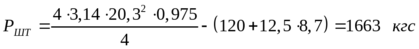 Усилие, передаваемая штоком тормозного цилиндра, определяется по формуле