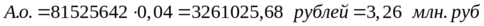 81525642 . (1 + 0,96) / 2 = 39,132 млн. рублей - средняя за первый год эксплуатации балансовая стоимость СПВ;
