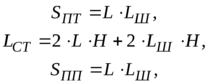SПТ, SСТ, SПП – площади потолка, стен, пола, м2: