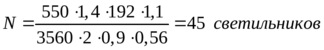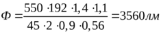 ηн – коэффициент использования светового потока ([13] приложение 2 таблица 9); ηн = 0,56.