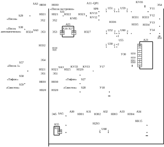 Напряжение на клапаны песочник У11–У14 подаётся через выключатель SF30 «ПЕСОК, СИГНАЛЫ, РЕЗЕРВУАРЫ» и контакты переключателя SA3 головной (хвостовой) секции.