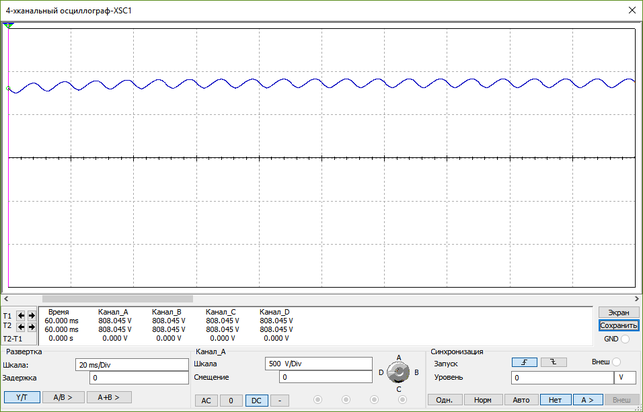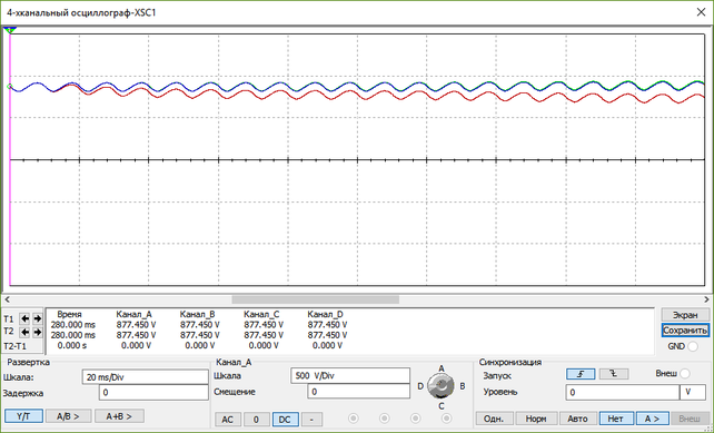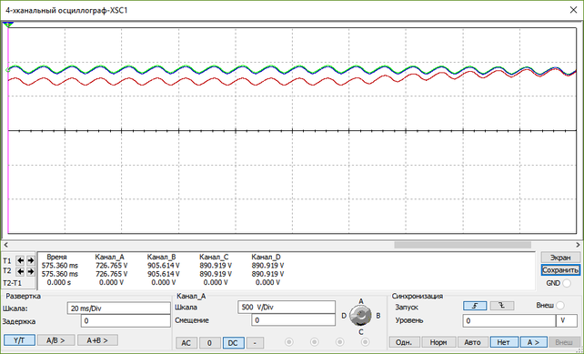 Значения напряжений между средними точками в номинальном режиме представлены на рисунке 3.8.