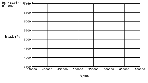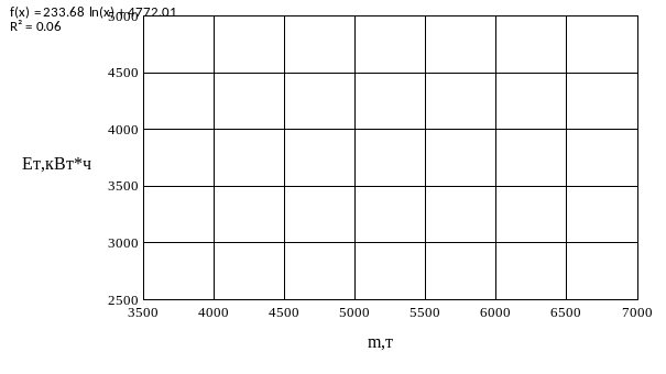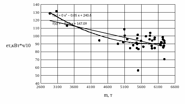 На рисунке 4.2 построены поля рассеяния полного расхода электроэнергии Ет в зависимости от значений массы и перевозочной работы.