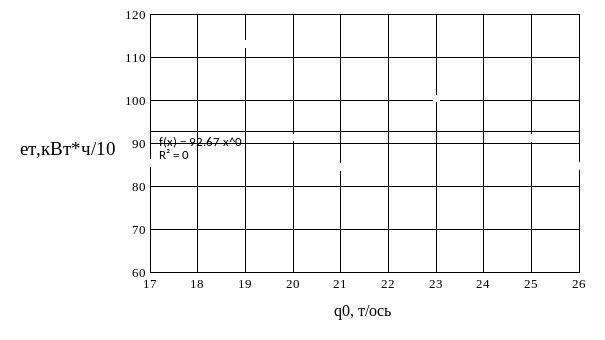 меняется с увеличением значений средней массы, приходящейся на ось вагона. Влияние массы состава снижается с ростом загрузки вагонов. Для груженных поездов, как это видно из рисунка 4.5 изменение массы состава меньше отражается на удельный расход электроэнергии.