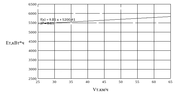 На рисунке 4.3 построены поля рассеяния полного расхода электроэнергии Ет в зависимости от технической скорости и нагрузки на ось.