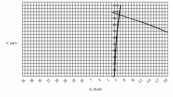 0/00 соединяются с точкой соответствующей Vнт = 0 км/ч. Точки пересечения прямых линий
