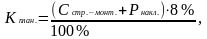 Накладные расходы, представляющие собой совокупность затрат, связанных с созданием условий строительного производства, его организацией, управлением и обслуживанием, составляют 70-75% от стоимости строительно-монтажных работ, тыс. руб.