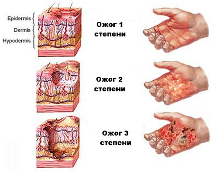 - обработать поврежденные поверхности кожи так же, как и при термических ожогах [11]. Пример степени ожогов на рисунке 4.3.