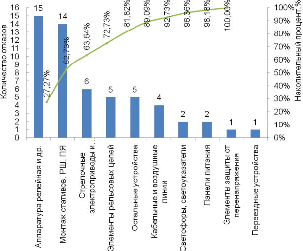 Рисунок 1.4 - Отказы по элементам за 12 месяцев 2015 года